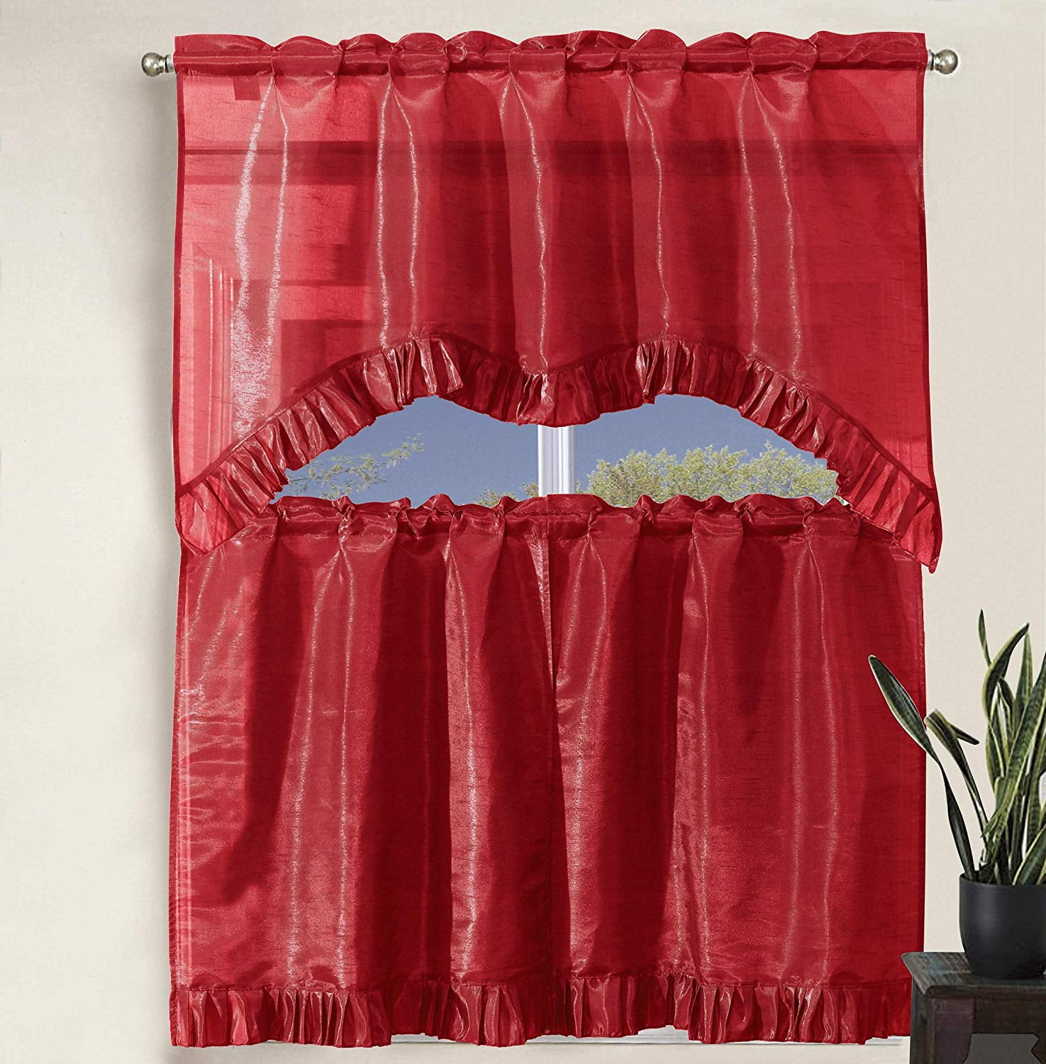 Victorian style swags tails valance curtain set features gold floral embroidery on smooth red chenille, luxurious and regal. The flat swag valance is an interesting visual point to any room. Gingham burgundy swag valance curtain 82 wide by 22 long. Gorgeous home 1 pc solid red scarf valance soft sheer voile window panel curtain 216 long topper swag. Get free shipping on qualified swag valance window scarves & valances or buy online pick up in store today in the window treatments department.